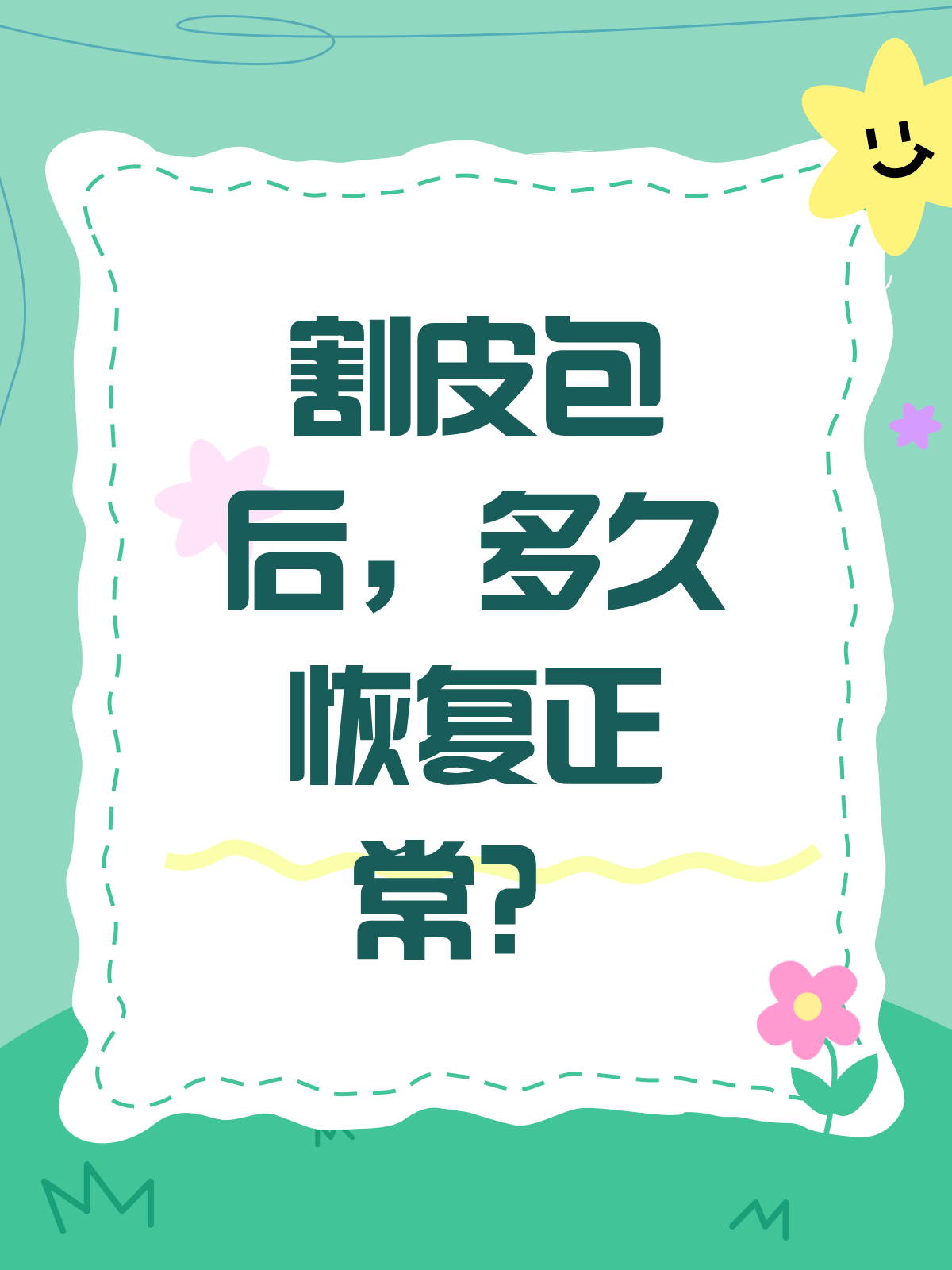 割了皮包多久恢复正常 传统的包皮环切术后,患者一般1个半月也就是6周以后,基本可以恢复正常下面是对恢复过程的详细解释1术后患者需要特别注意的是切口出血问题,一般危险期在48小时以内,若无异常48小时左右到门诊更换切口敷料一次若无异常,术后5天再次更换敷料2术后1周左右,若无异常。
