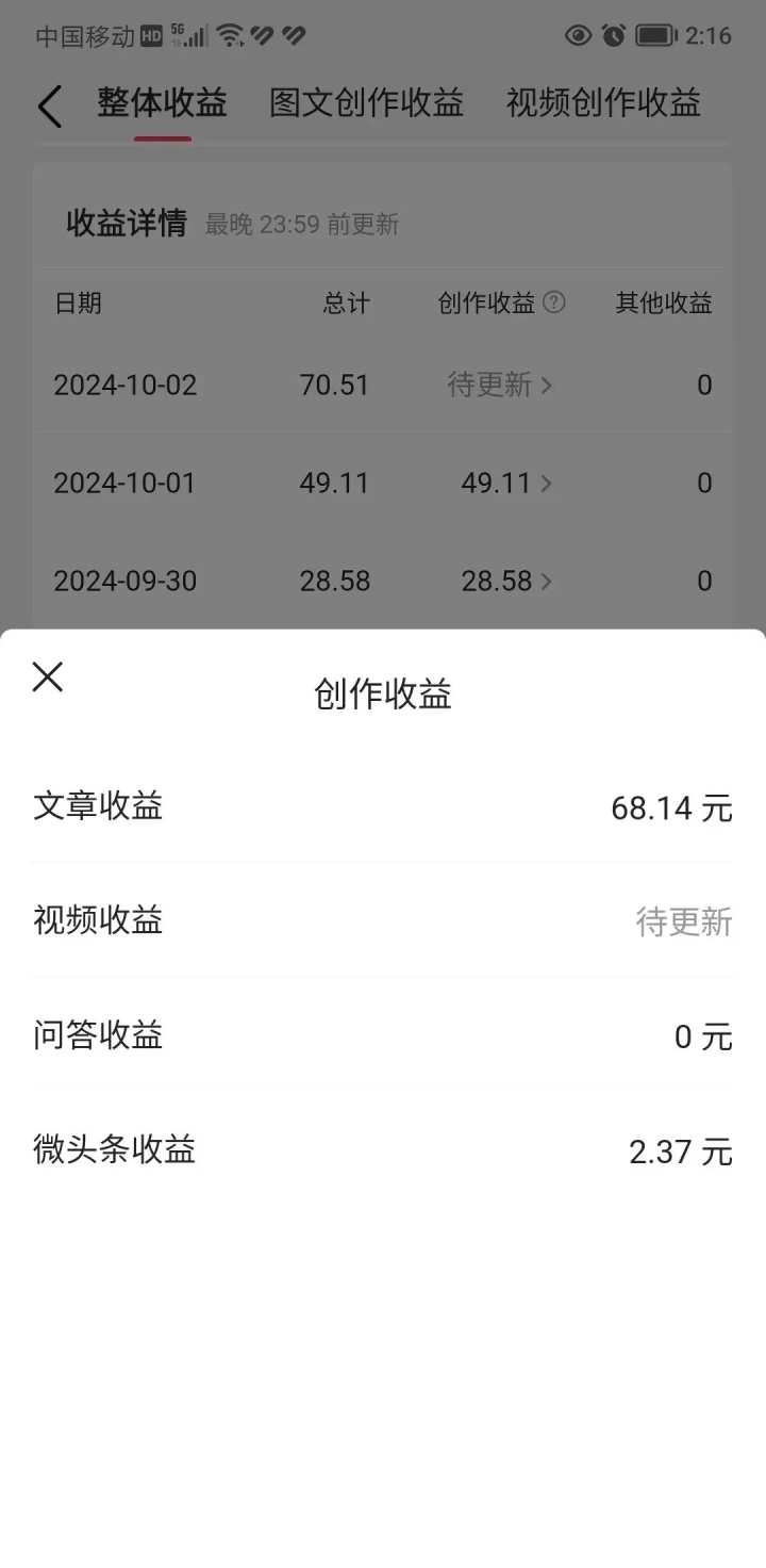 1、一内容创作流量分成 这是最基本的收益方式,也是大多数人能够拿到的收益在今日头条上,创作者发布的文章或视频在产生流量后,如果接入了广告,用户点击广告就会产生一定的收益但需要注意的是,这种收益方式的天花板比较低,因为收益与广告点击率直接相关,而广告点击率又受到多种因素的影响图文创作。