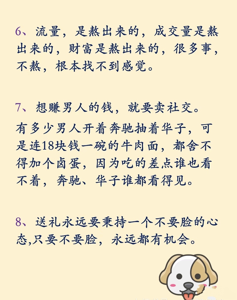 快速赚钱实现财富自由并非靠偷偷溜进上层社会攀关系 虽然题目探讨的是如何与比自己厉害的人建立关系,但我们必须明确,快速赚钱和实现财富自由并非仅仅通过攀关系就能达成真正的成功需要实力智慧机遇和持续的努力以下是对如何与比自己优秀的人建立关系的分析,以及对此类行为的正确看法一理解人类;财富显化的秘诀核心在于通过灵性实践意识转变和积极行动,将愿景与宇宙智慧结合,突破逻辑限制,最终实现物质与精神的双重丰盛具体可从以下方面实践一显化的基础从小事积累信心每完成一件小事都是显化通过日常小事如整理房间完成工作积累成功经验,强化“我能显化”的信念小事的积累会逐渐;世界富豪快速赚钱的六大秘诀如下第一大秘诀脸皮要锻炼得很厚 富豪行为模式常异于常人,会做出违反社会常规招致他人忌恨的事例如美国最大零售商沃尔玛的创办人山姆·沃尔顿,经常扰乱市场价格,一旦有机会便向供应商杀价,供应商们都知道跟沃尔玛做生意不容易这表明若想成为富豪,不能过于在意他人;1 在快速发展的经济时代,财富积累成为了人们的首要任务对于资金紧张的人来说,如何迅速增加收入是一个紧迫的问题本文将揭示18种让你快速翻身的赚钱策略,让你在有限时间内实现经济独立2 在线工作借助互联网,你可以成为自由职业者,如写手程序员或设计师,只需一台电脑和稳定网络,收入取决;如何发财揭秘发财的秘诀有哪些 1 追求激情专注于自己真正感兴趣的事业只有对所从事的工作充满热情,你才愿意投入时间和精力,从而增加成功和财富的可能性2 创新求变采纳新颖的观点和方法,它们往往能孕育新的商机在确信新方法比旧方法更有效之前,不要轻易放弃旧有做法3 创业为主若;1 在这个经济迅速发展的时代,积累财富成为了人们的重要目标资金紧张的人迫切需要找到快速增加收入的方法本文将介绍18种赚钱秘诀,帮助你尽快摆脱经济困境2 在线工作通过互联网,你可以成为自由职业者,如写手程序员或设计师你只需要一台电脑和稳定的网络连接,收入将根据你的技能和工作的量。